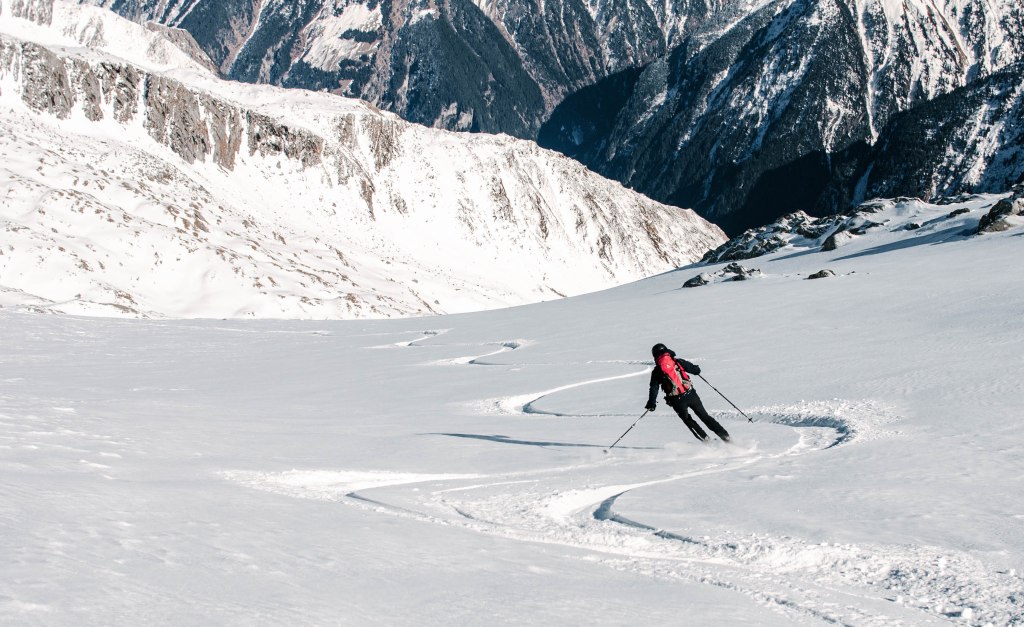 Diese Abfahrt übers Federbettkees ist definitiv die beste des bisherigen Winters. Leider dauert sie nur 200 Höhenmeter. Da es mittlerweile relativ spät ist haben wir uns für die Abfahrt über die Rifflerscharte entschieden. Die gibt uns die beste Mischung aus Abenteuer und zeitnaher Ankunft – denken wir. Am Ende ist es dann doch ein wenig mehr Abenteuer als geplant.